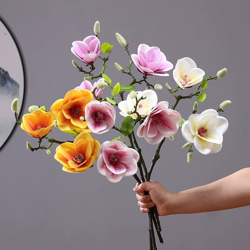 新シミュレーション中国式ミニ3頭の短枝小碗蘭玉蘭3dプリント玉蘭家庭ソフト人工花材
