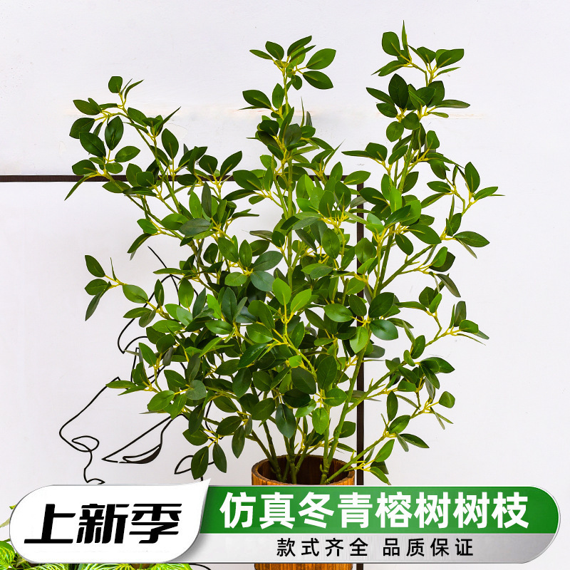ガジュマル葉冬青葉単枝緑植物ミラノ仔偽枝結婚祝い造景生け花盆栽装飾