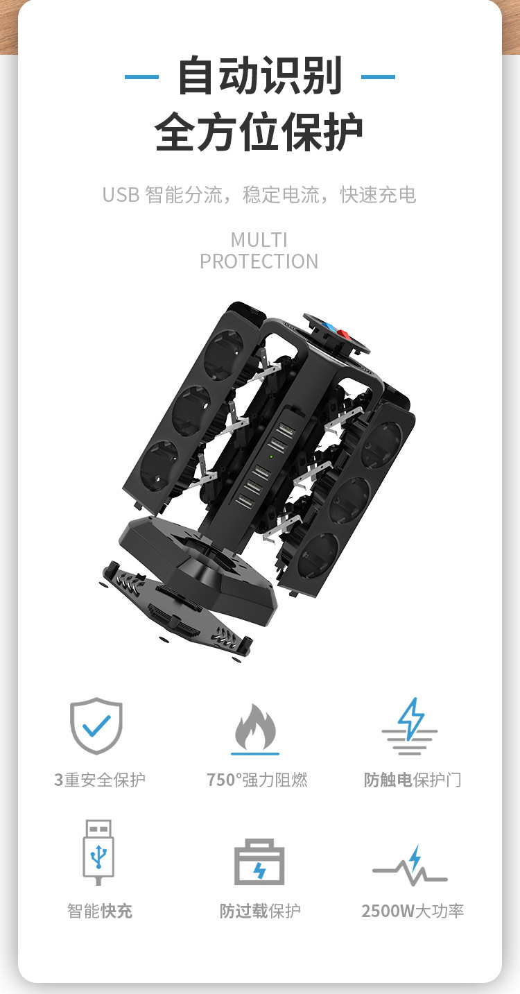 アマゾンクロスボーダー欧規立式コンセント一転多機能デスクトップ塔式コンセント徳規韓規対外貿易専用供給