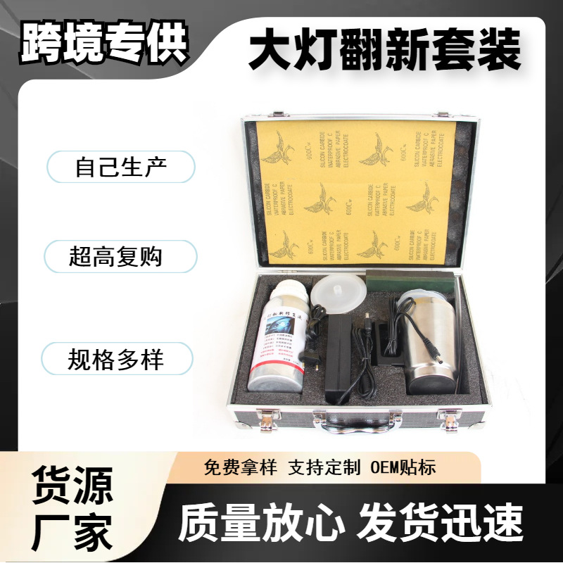 热销汽车大灯翻新工具铝盒款 前照灯镀膜修复套装 蓝色雾化修复液
