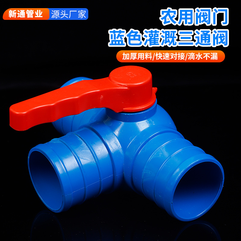 供应蓝色灌溉三通球阀软管接头直接快接变径阀门水带三通