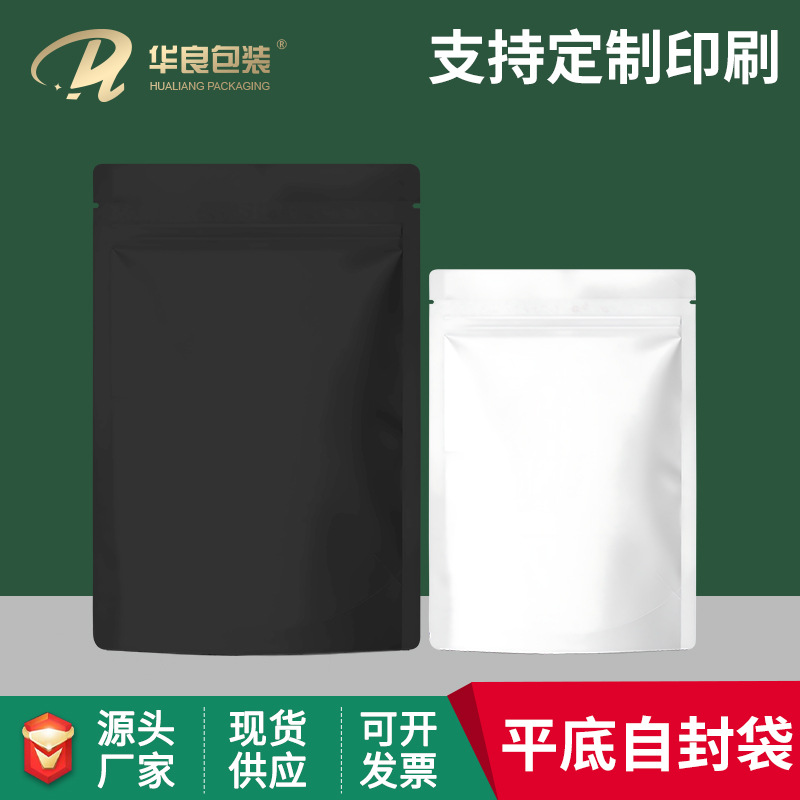 黑白色密封袋哑光纯色镀铝平底自封袋加厚铝塑食品包装袋通用印刷