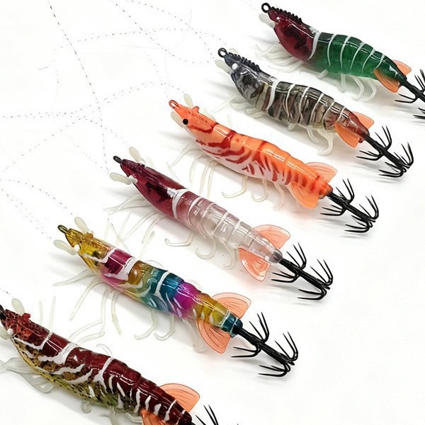 夜光缓沉木虾钩 软脚虾鱿鱼钩平衡虾跳节虾吹筒钩仿真虾 海钓鱿鱼