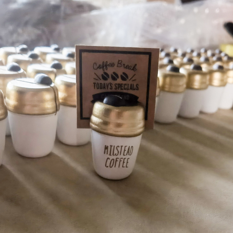 アマゾン名刺ホルダー、おしゃれなデスクトップラベルホルダー、コーヒーカップ型木製メッセージホルダー、かわいい手作り飾り
