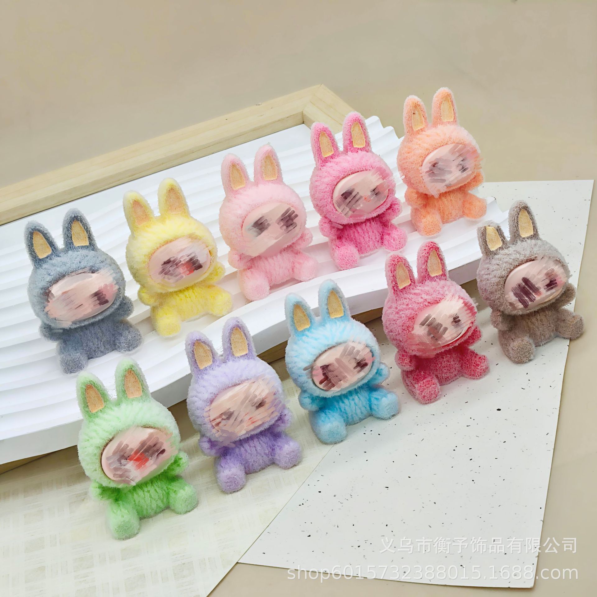 かわいいおしゃれなマカ色の植毛歯が出た布製羊の置物、樹脂製DIYアクセサリー、ミニフィギュア置物