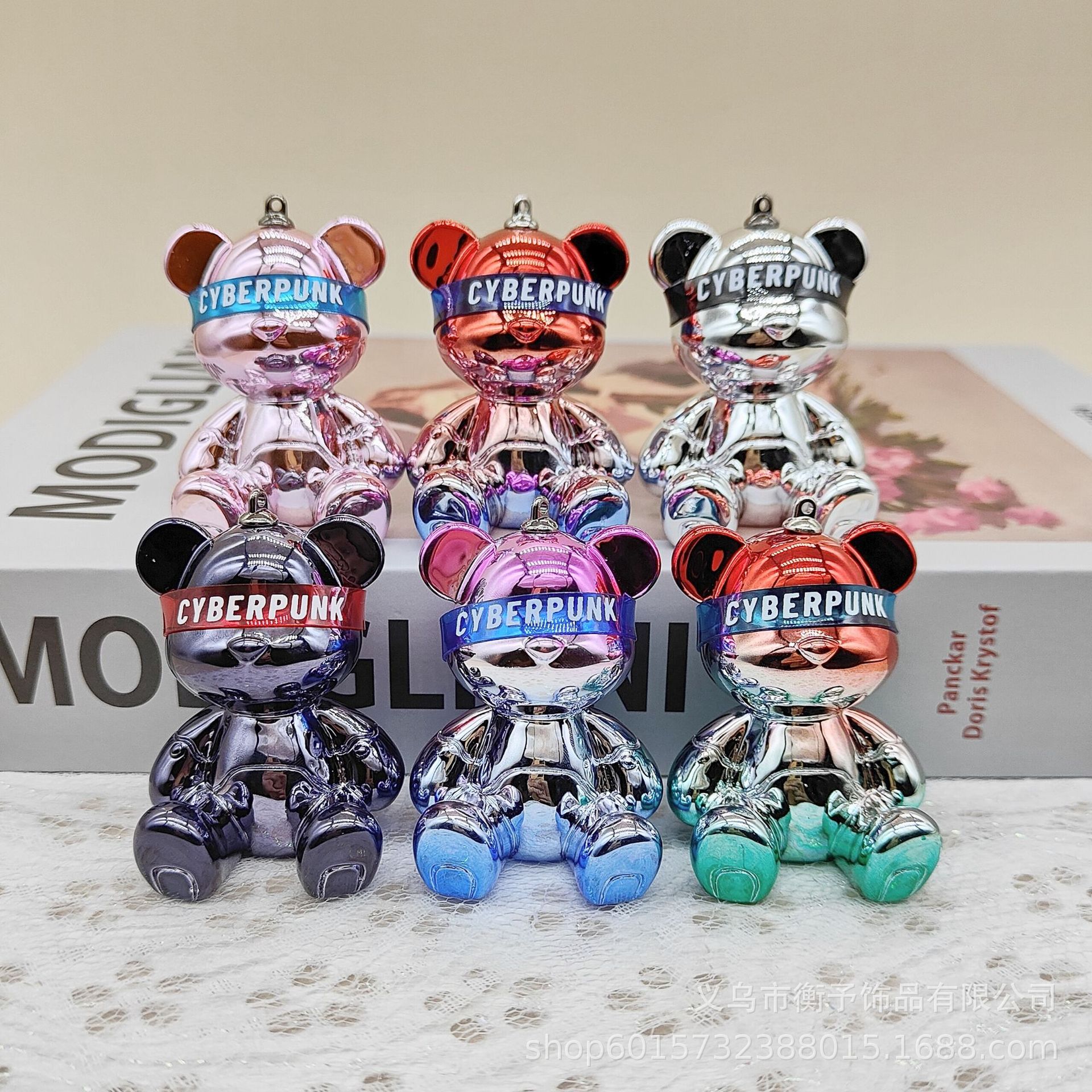人気の漫画樹脂電気メッキカラフルなクマキーホルダーペンダントクリエイティブかわいいデスクトップ立体装飾品ギフト卸売