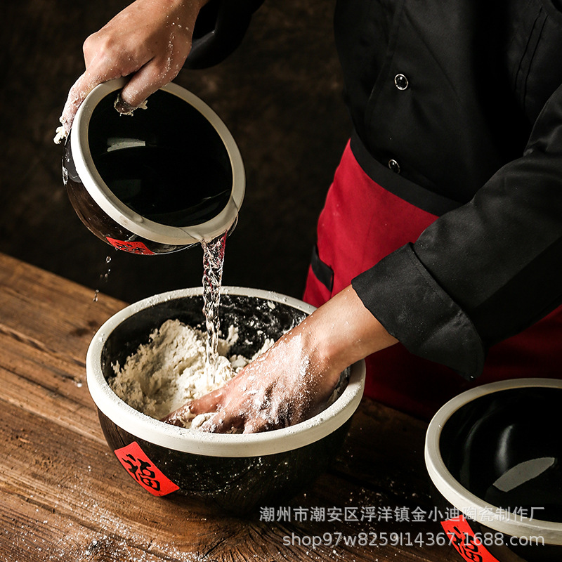 創意粗陶7.5寸深福碗スープ碗のカップラーメン碗の新しい中国式のノスタルジックな食器は香碗のすり鉢と鶏の碗をつなぎます。