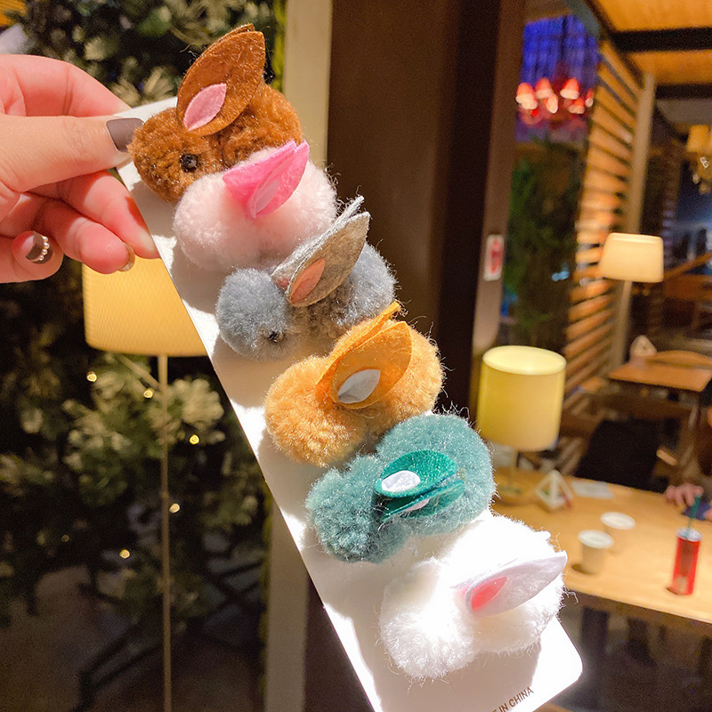 韓国のかわいい小清新な森の女性の毛玉のウサギは太い皮の筋のシュシュをプラスします。