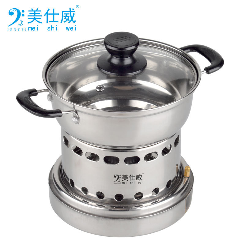 ホットポット用液体アルコールストーブセット、一人用ステンレス製、アウトドアキャンプ、業務用ホテル、小型ホットポット、無煙
