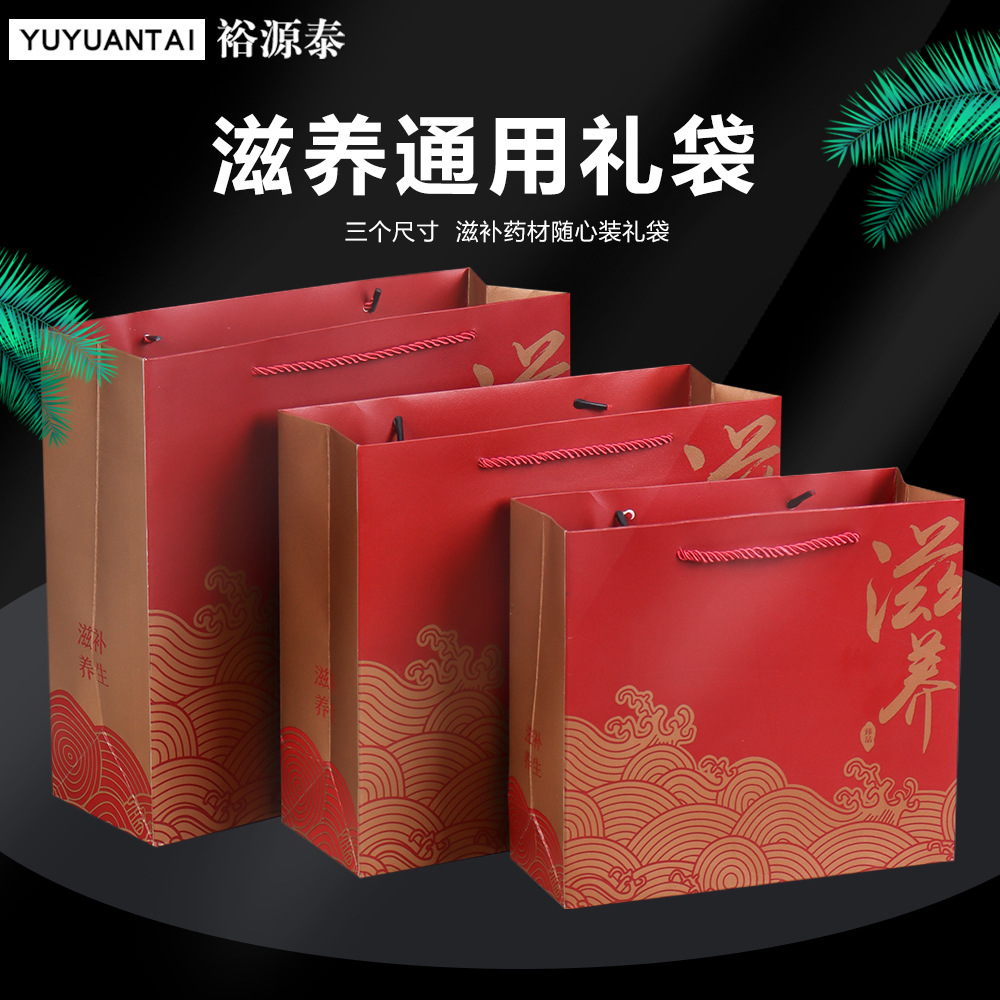 滋養健康ギフト紙袋、持ち運び可能な汎用ギフトバッグ、各種乾物・サプリメント用紙袋、牛革紙製