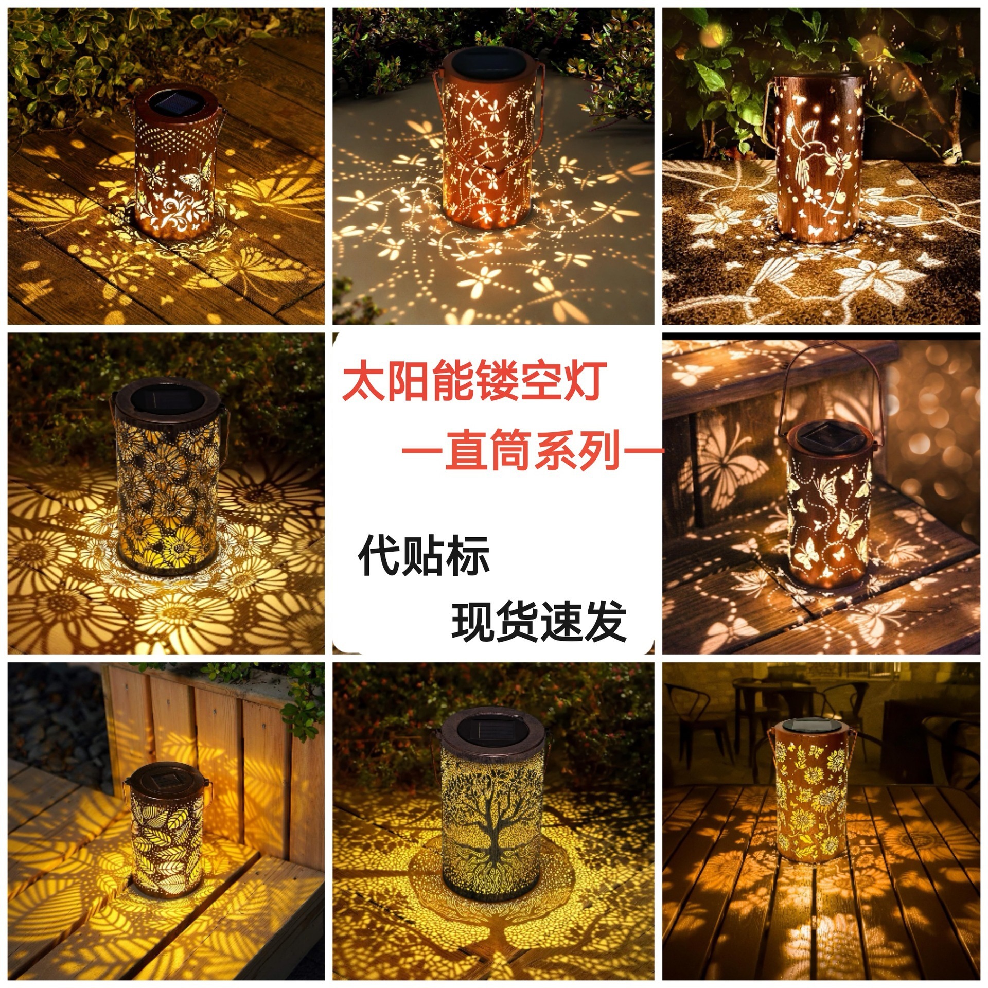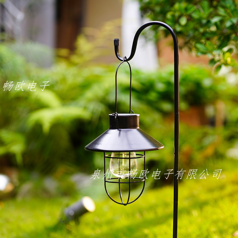 亚马逊爆款太阳能灯笼阳台花园铁艺镂空挂灯户外庭院灯装饰露营灯