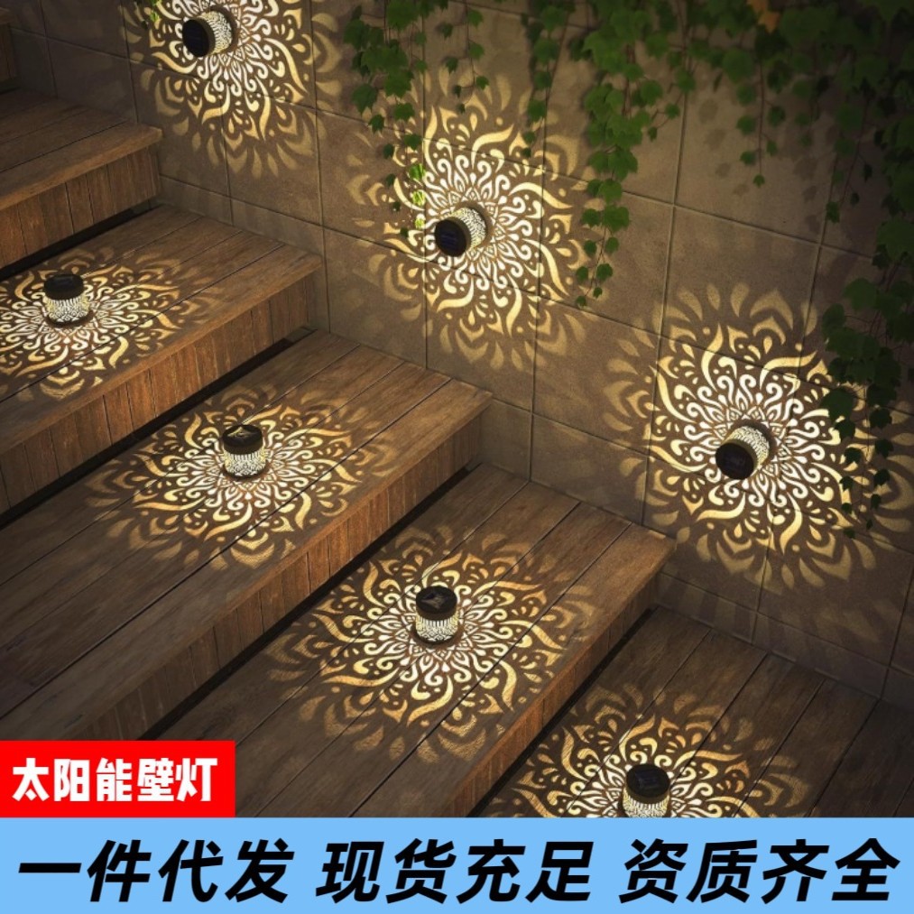 跨境亚马逊太阳能曼陀罗太阳花向日葵墙壁灯花园庭院装饰景观壁灯