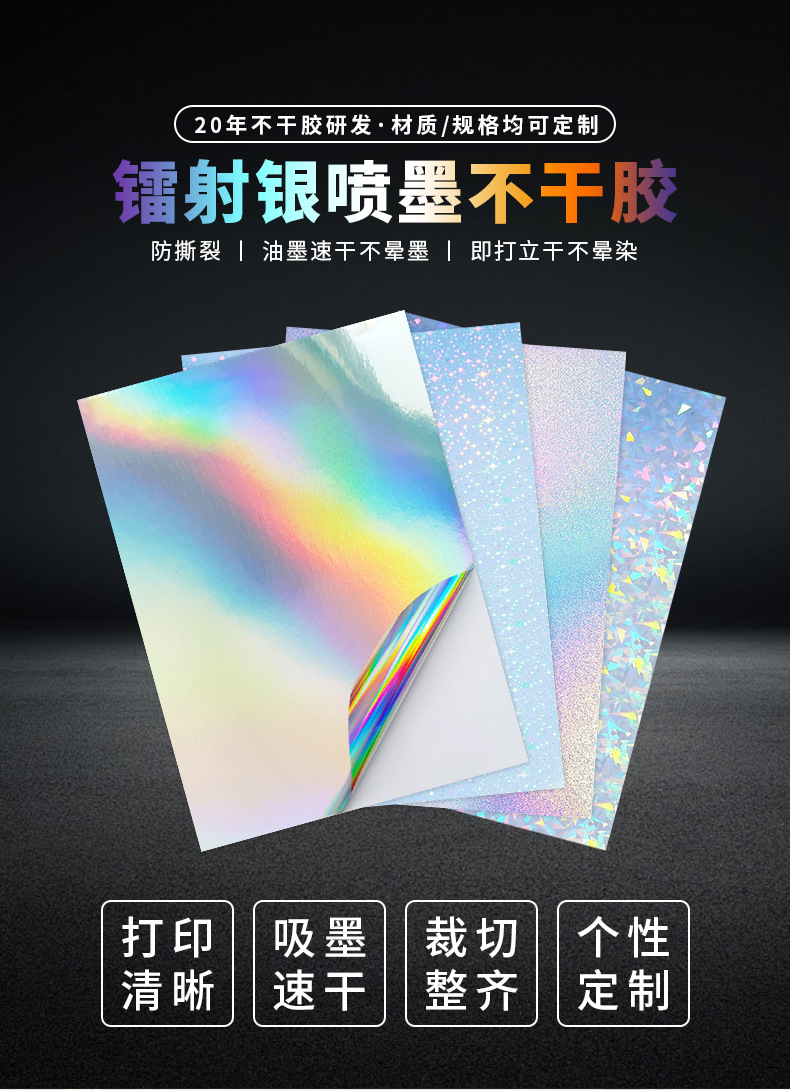 インクジェット印刷用無地レーザーPET粘着印刷紙、カラフルなA4ステッカーラベル、粘着素材が人気です。