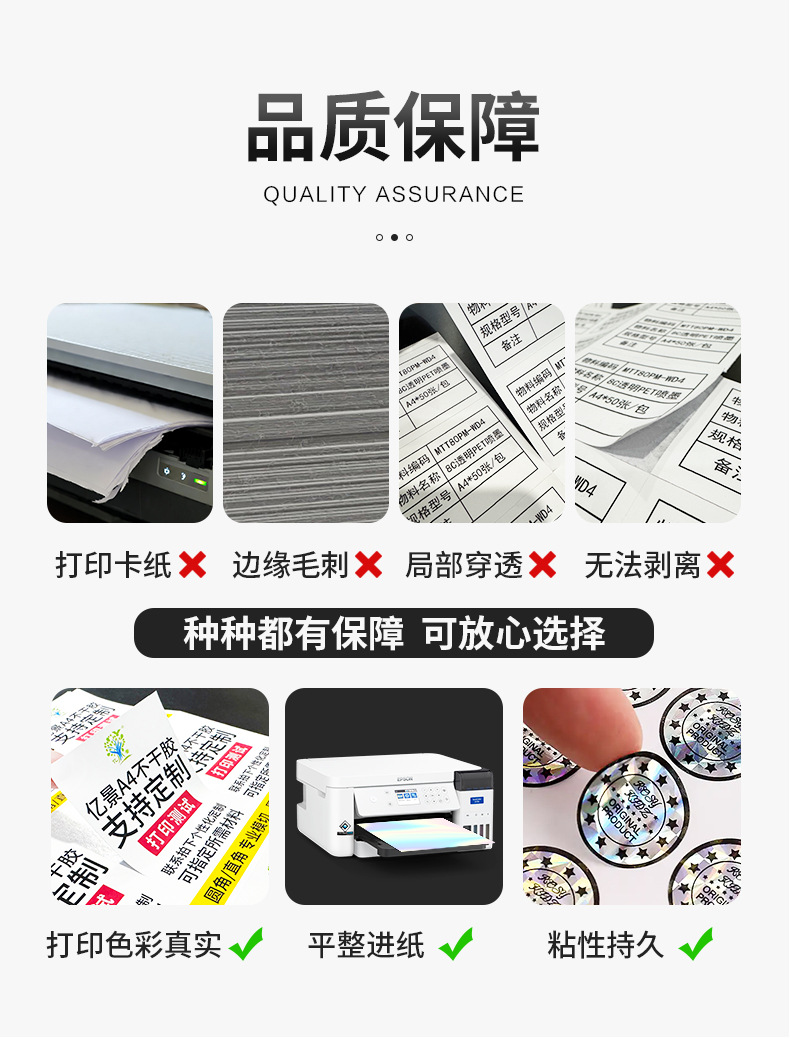 インクジェット合成紙マット防水粘着ラベルステッカーカスタムA4光沢印刷用紙名札印刷