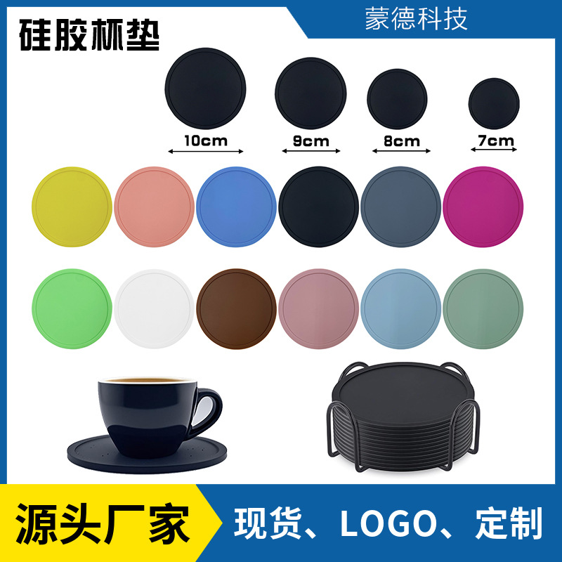 10cm円形シリコンコースター現代シンプルなオーバーフロー防止カップマット付き食品級滑り止めカップマットセット