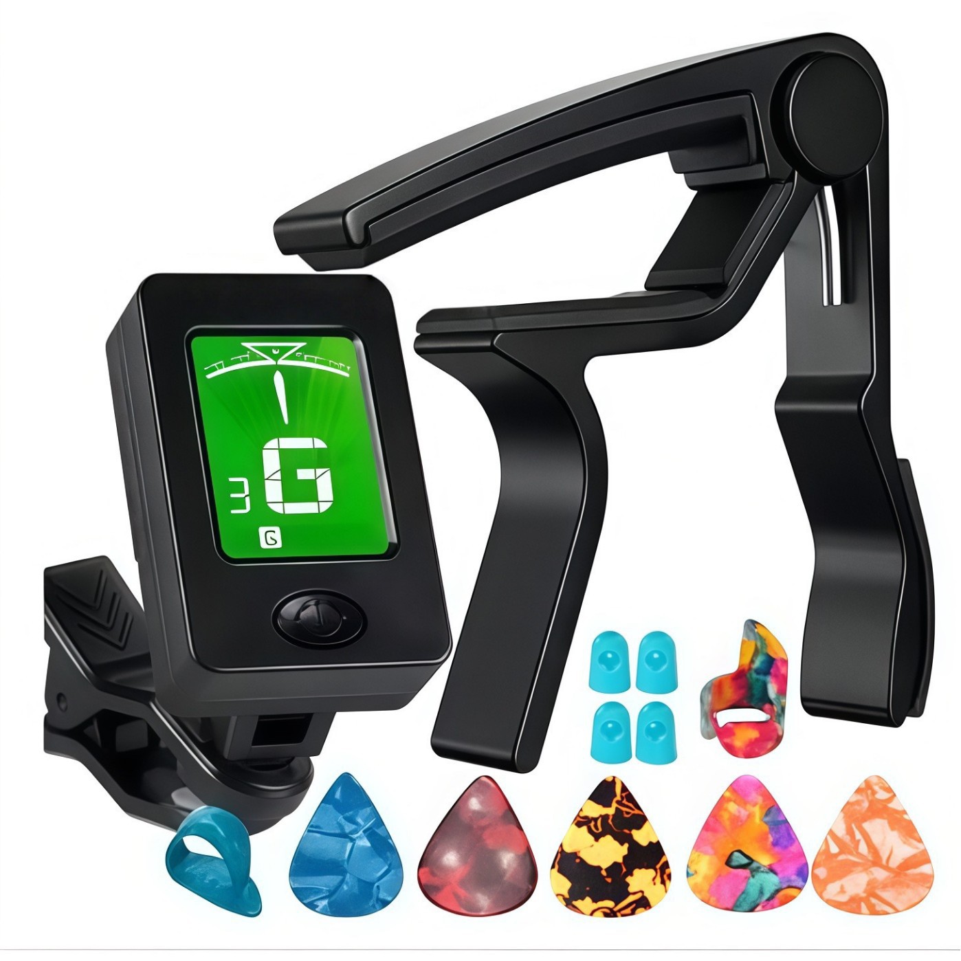跨境亚马逊热卖吉他配件套装吉他变调夹调音器琴弦拨片弦钉手指套