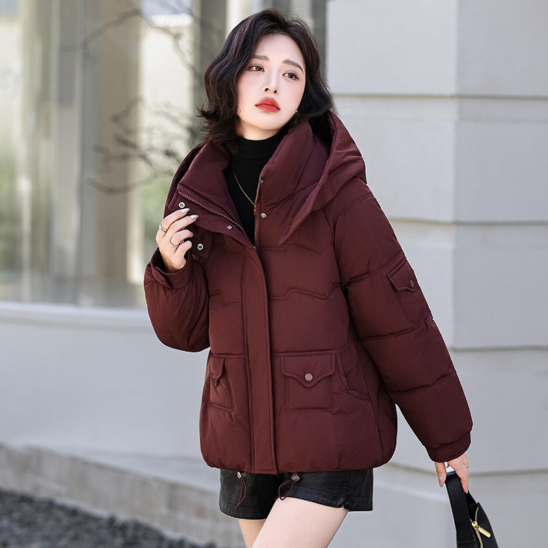 2025 新しい綿パッド入りジャケットファッショナブルな女性のルーズショート韓国スタイル綿パッド入りフード付き痩身多用途トレンディな冬の綿パッド入りジャケット