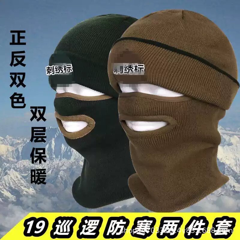 新式防寒面罩双面防寒面罩帽子套装棕色两面可戴边防巡逻帽子面罩