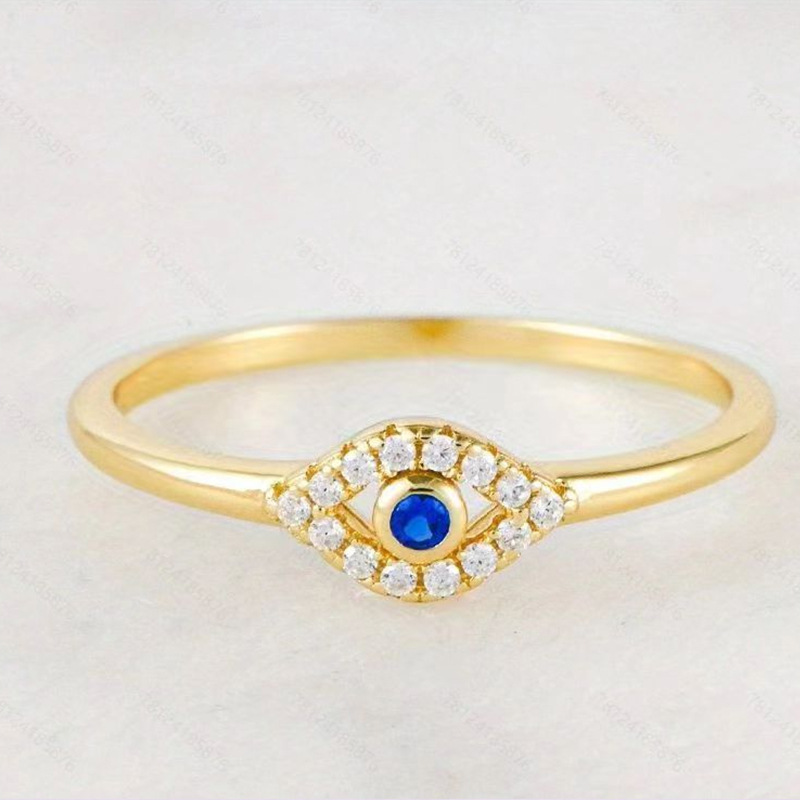 欧美恶魔之眼铜制戒指简约微镶锆石蓝眼睛指环女冷淡风个性手饰品