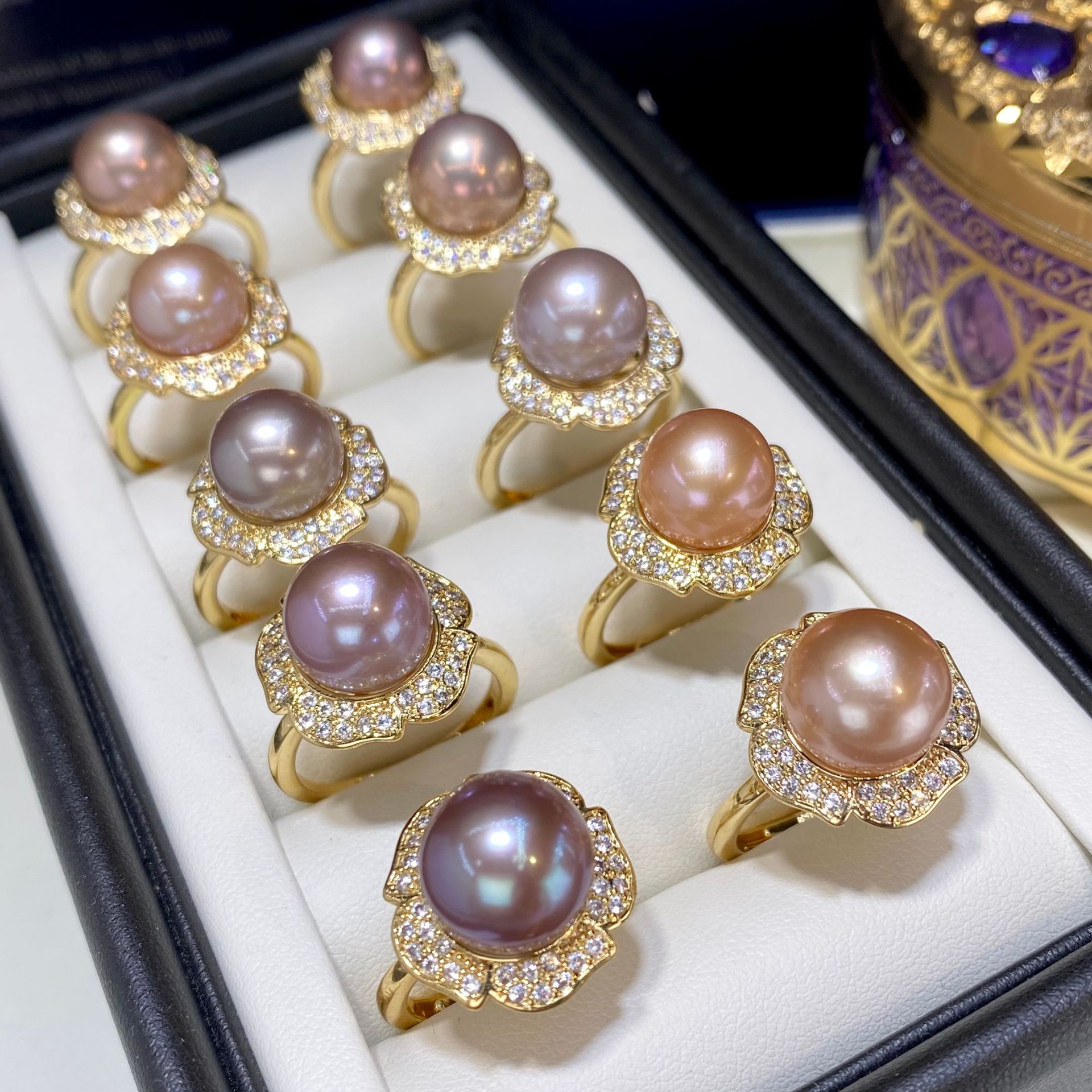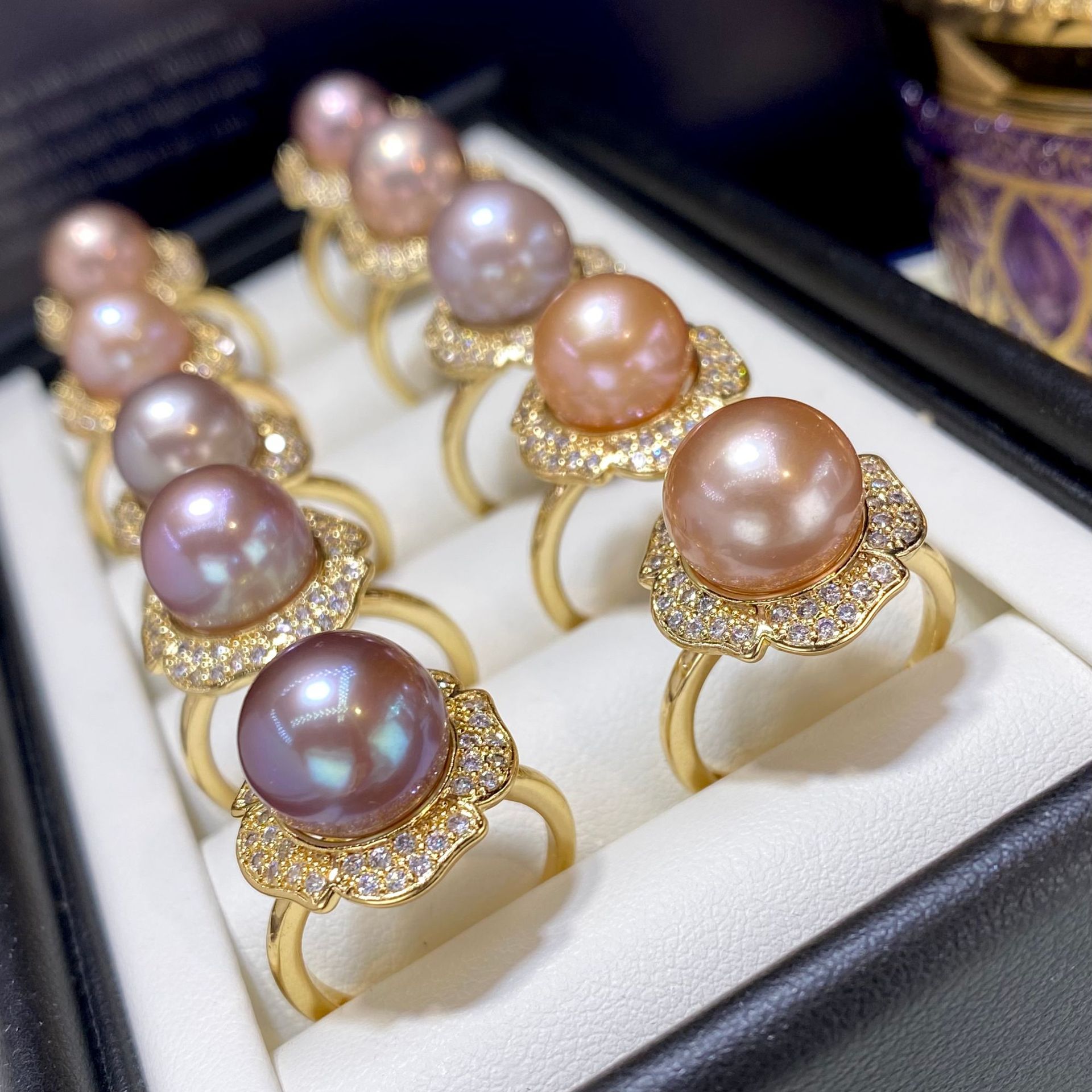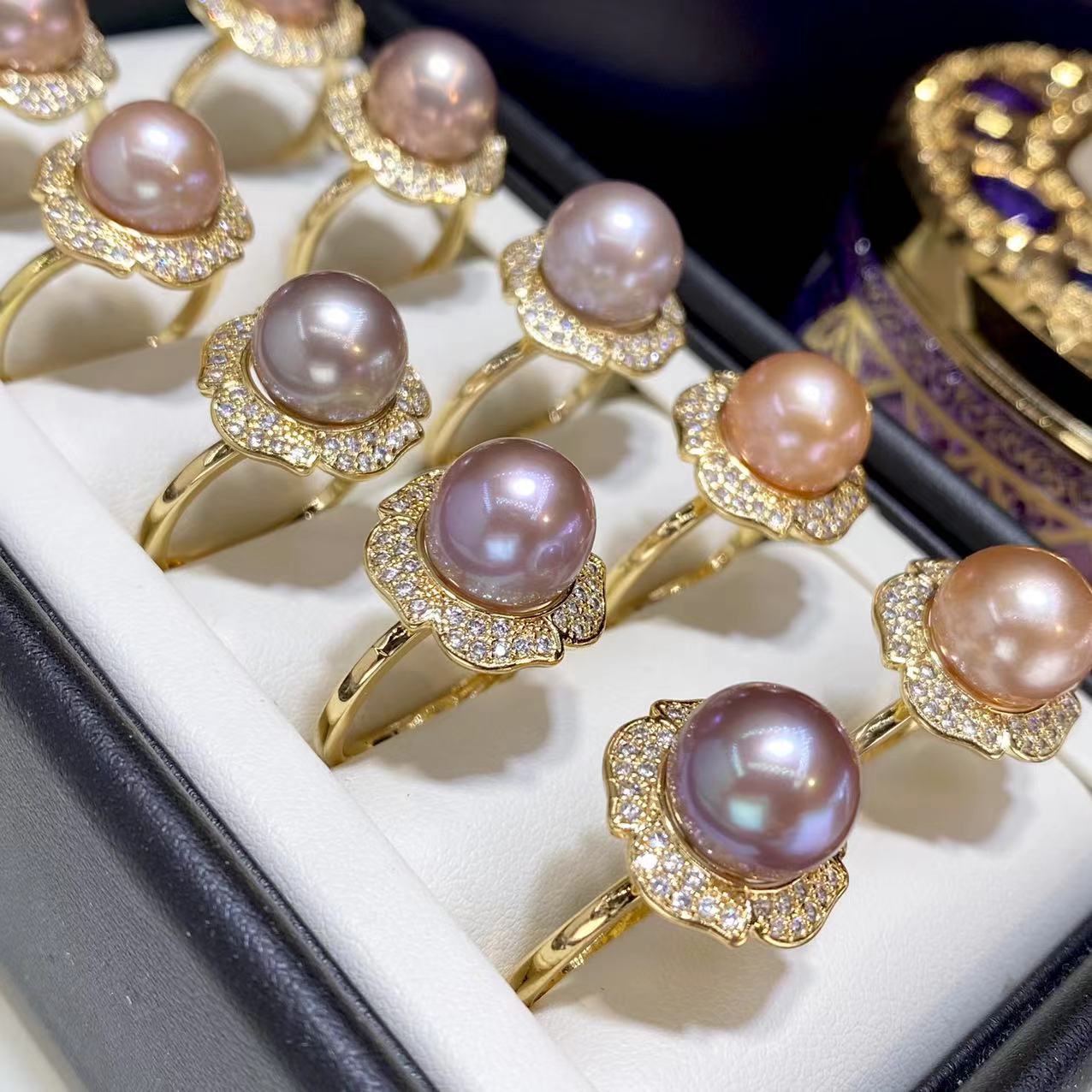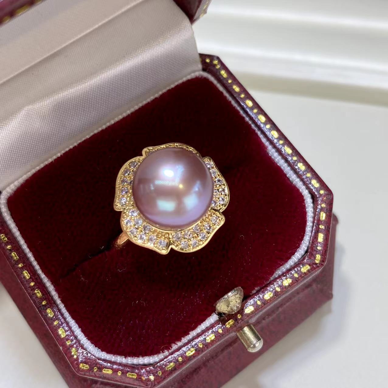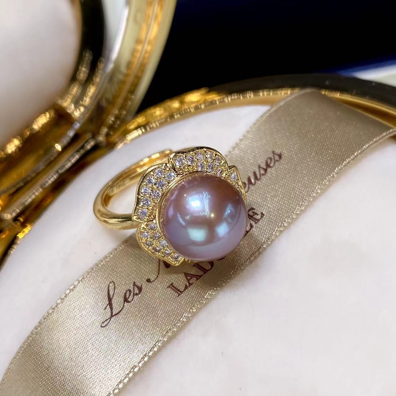 エジソン淡水真珠紫指輪11-12mm円珠18k包金戒托真珠源真珠卸売り
