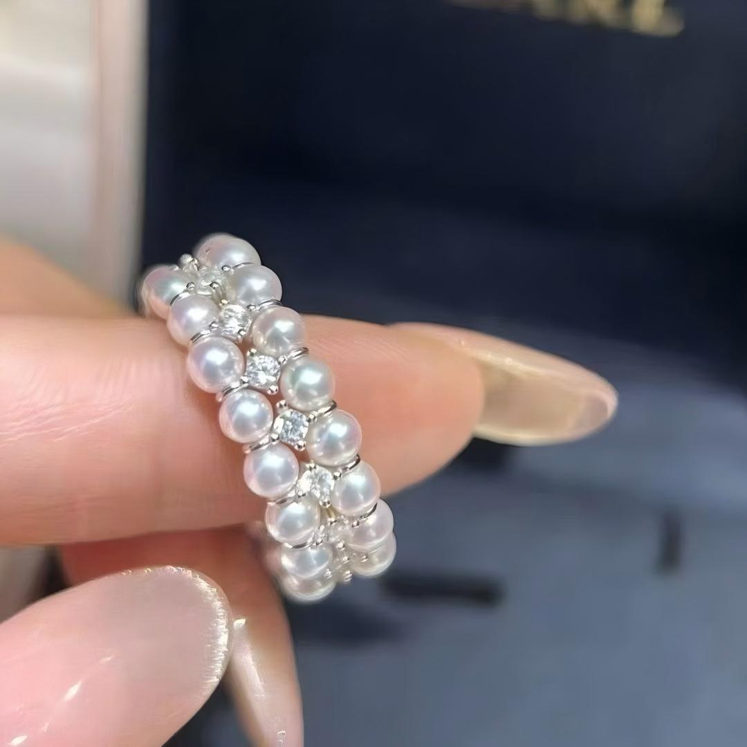 迷你天然淡水小珍珠戒指时尚轻奢双排弹力绳锆石珍珠戒指直播批发