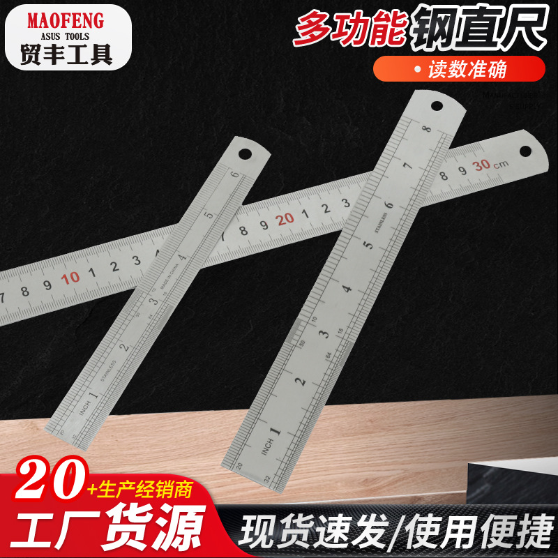 源工場中性鋼直尺15cm鋼尺20 cm鋼板尺鉄測子測定尺工具クロスボーダー商品
