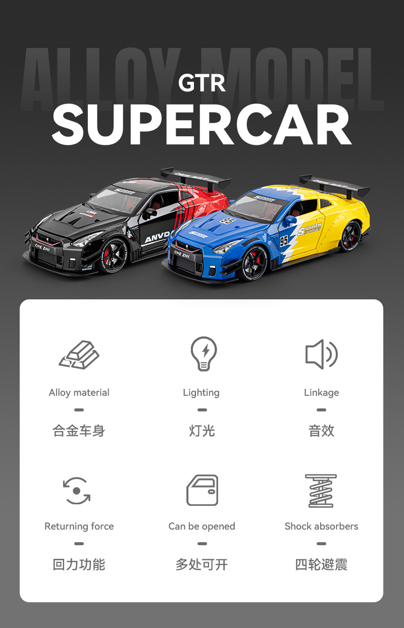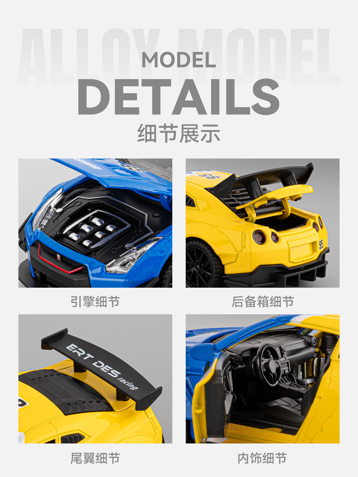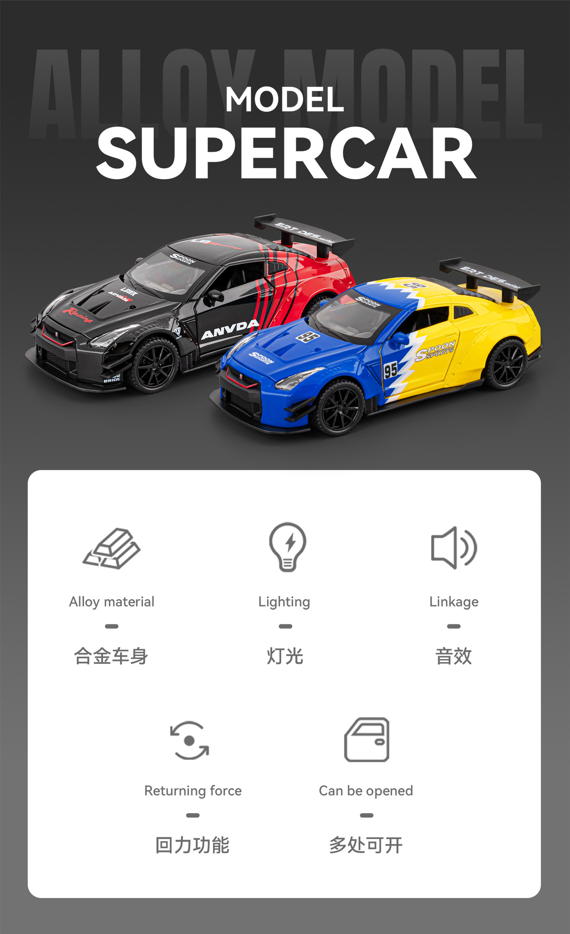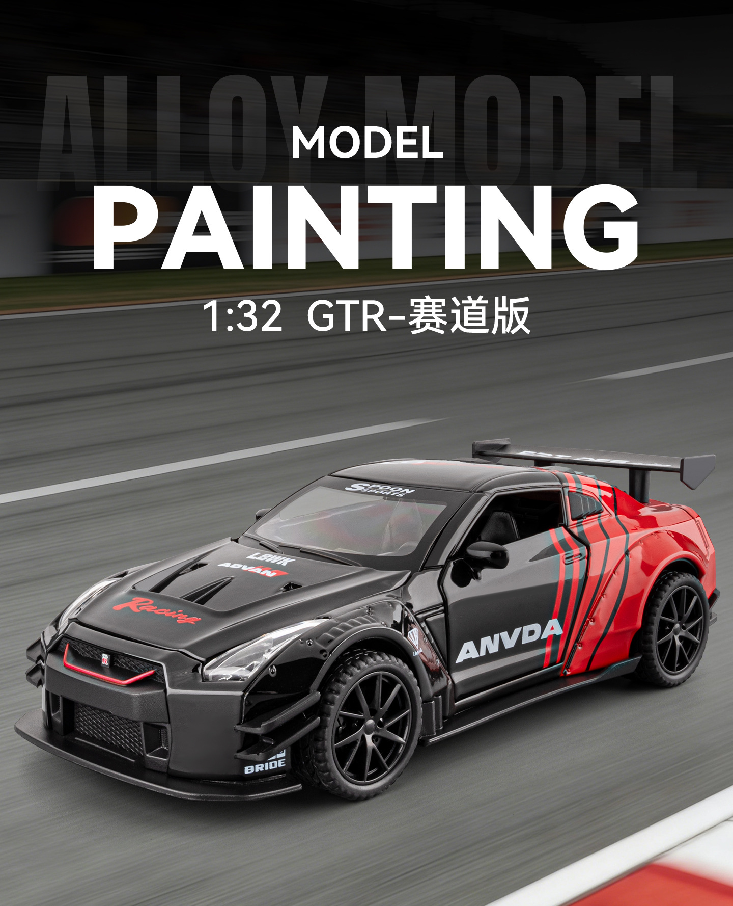 1:32GTR東瀘戦神スポーツカーオープンバック力音光シミュレーション自動車モデル合金後輪免震玩具