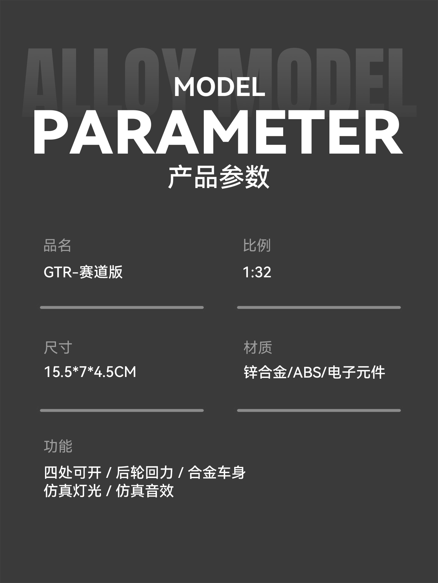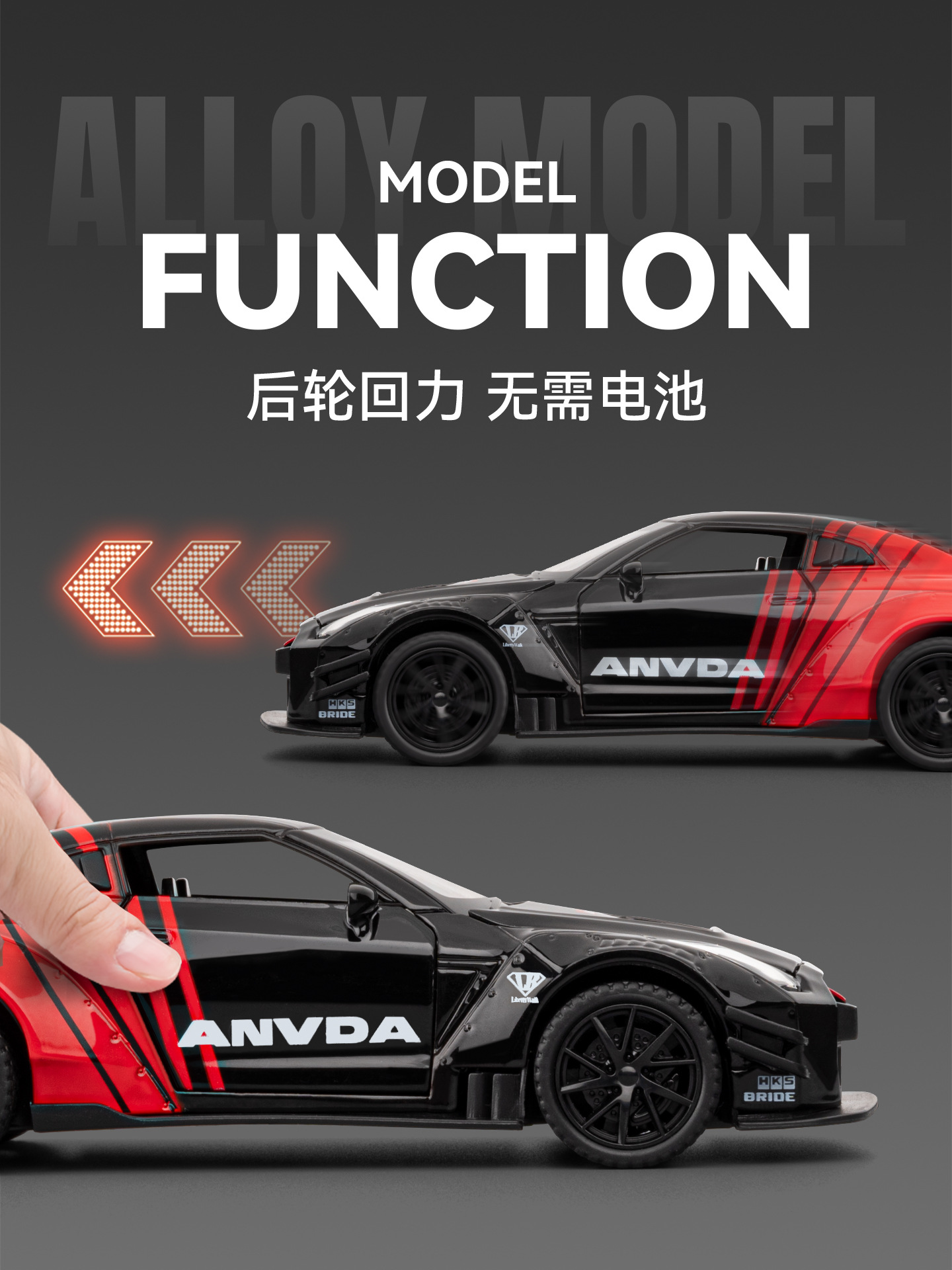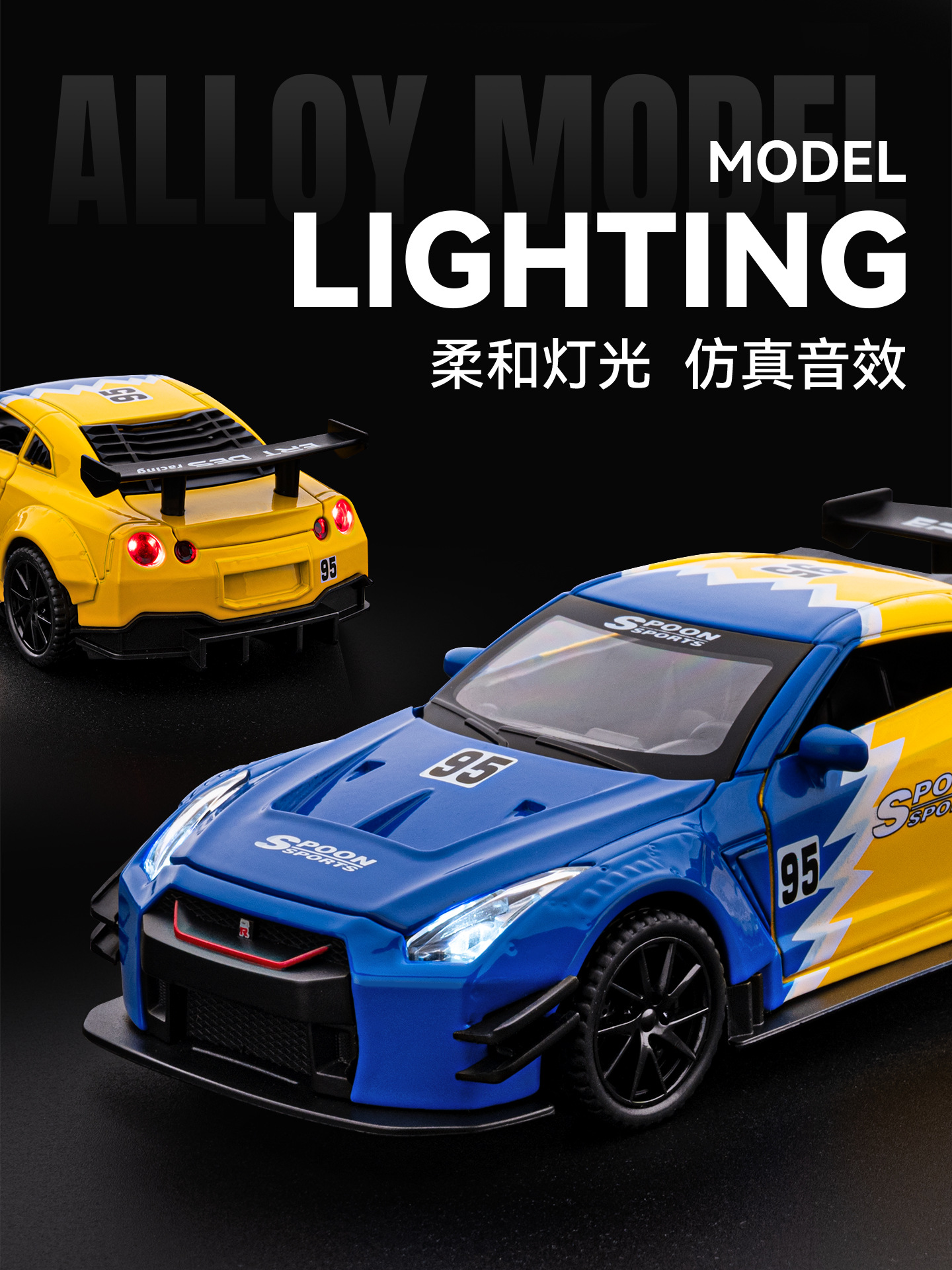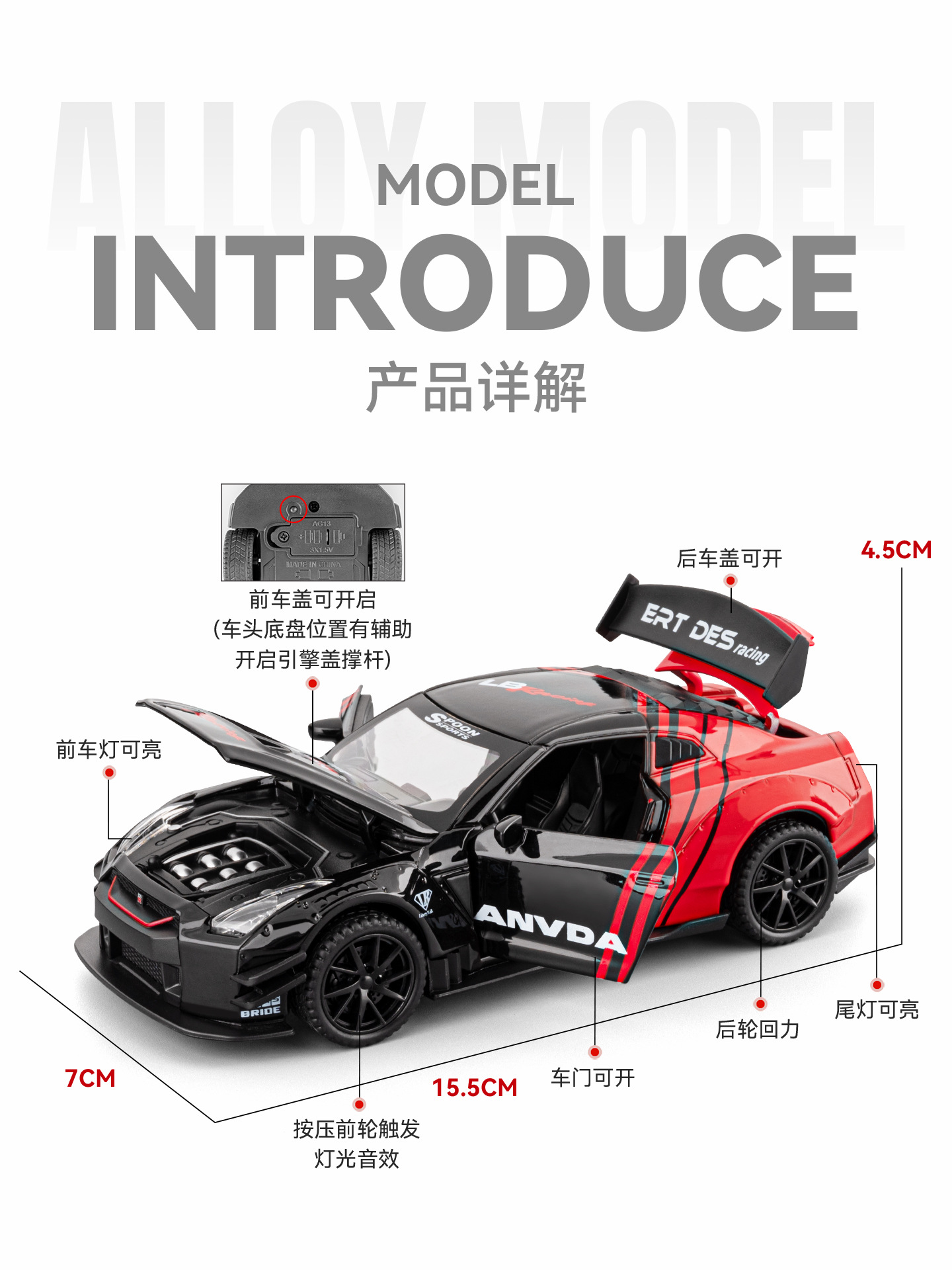 车致1:32/24尼桑GTR跑车战神合金声光回力仿真合金汽车模型赛车版
