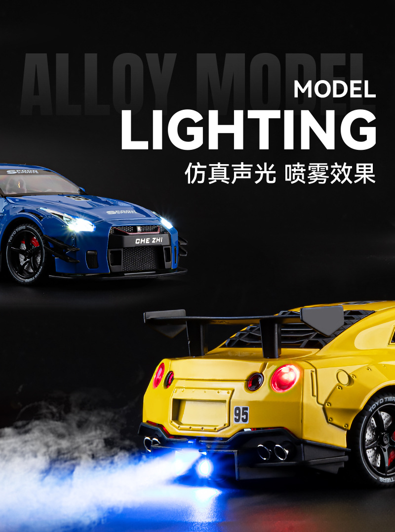 車致1:24gtr噴霧版シミュレーション合金車模型振り子音光回力少年玩具プレゼント卸売り