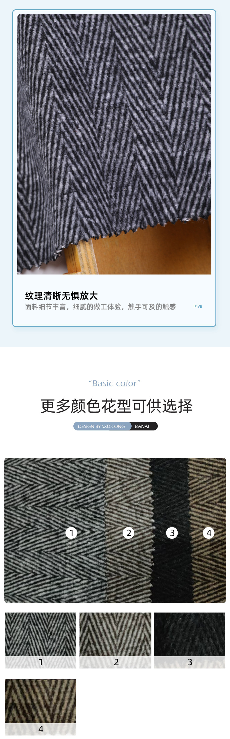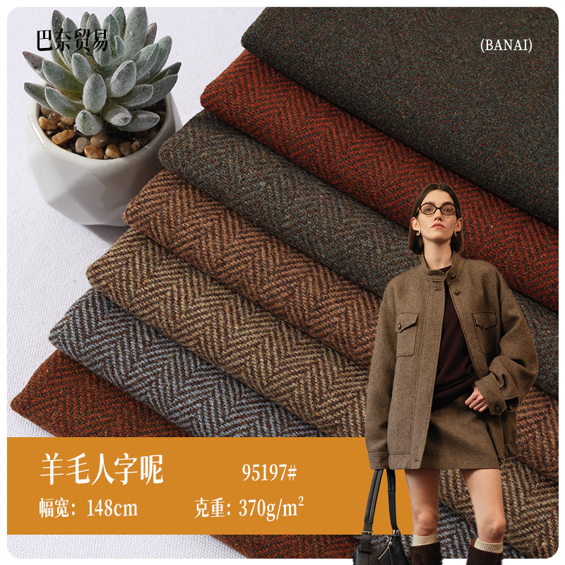 现货人字呢面料人字纹鱼骨纹毛呢面料秋冬外套裙装鞋帽箱包布料