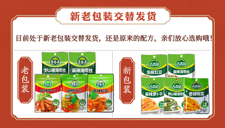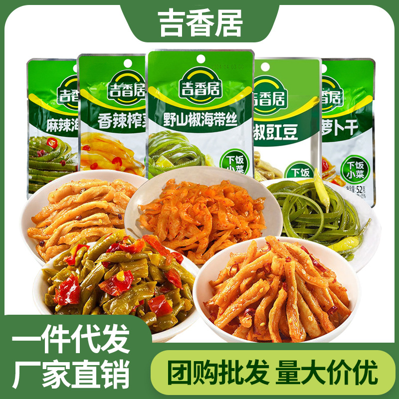 吉香居52克香辣榨菜麻辣萝卜干小包装海带丝下饭菜咸菜整箱批发