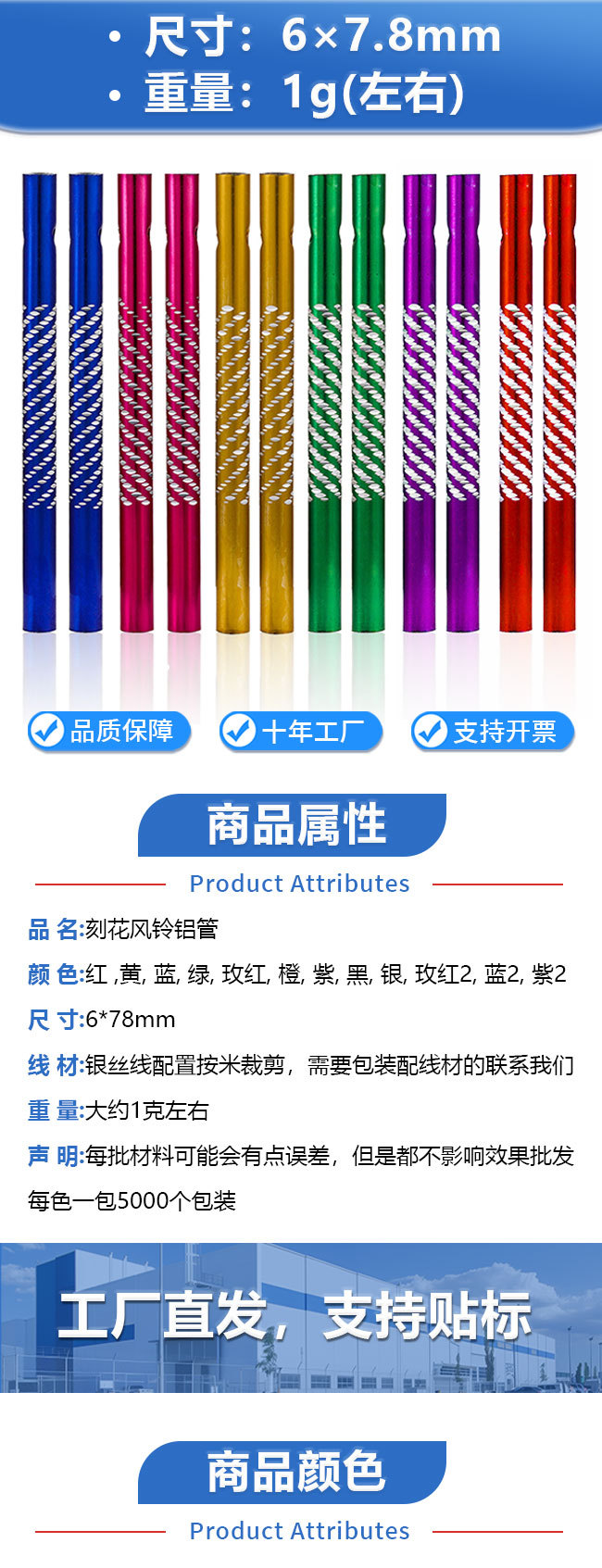 跨境DIY风铃杆风铃挂饰金属空心铝管8cm木质diy配件吊坠铝制铃铛