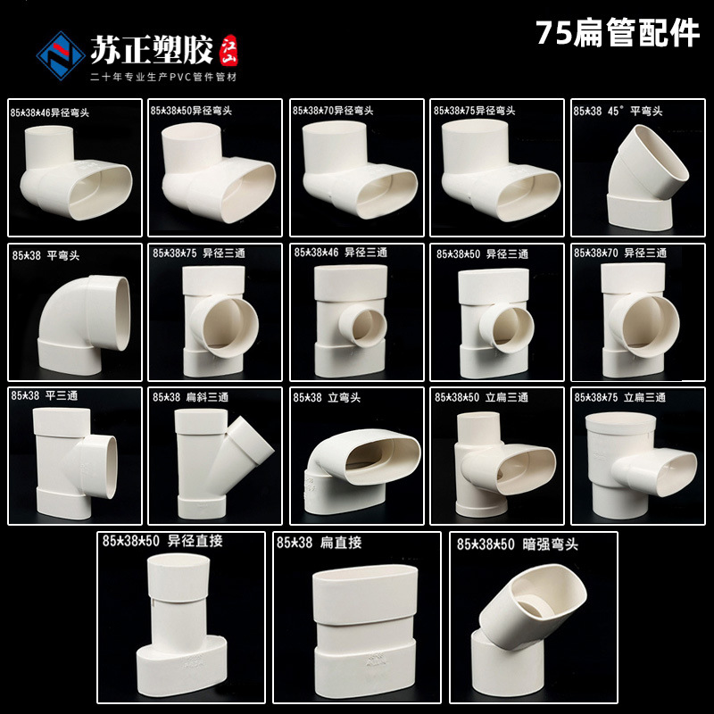 Pvc75平管継手75楕円管部品ベランダ台所トイレ下水85*38平件シフター