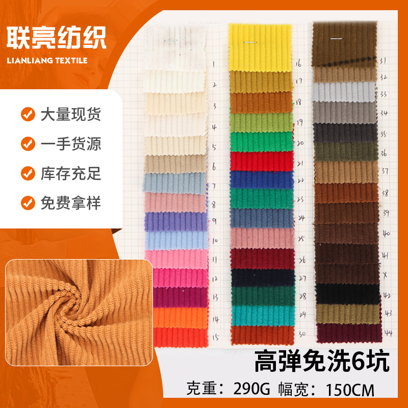 現物42色全ポリエステル経編弾力4.5本のコーデュロイ秋冬綿服ズボンスーツ抱き枕生地