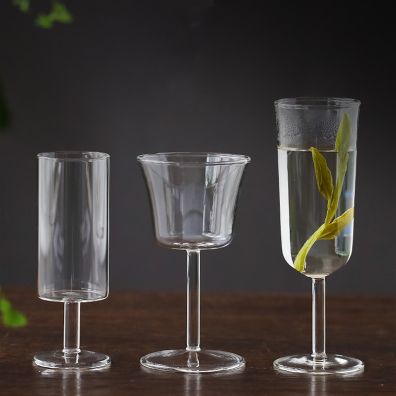 高ホウ素シリコンガラス花茶緑茶品茗水杯赤ワインカクテルカップ高脚グラス透明猿魁杯