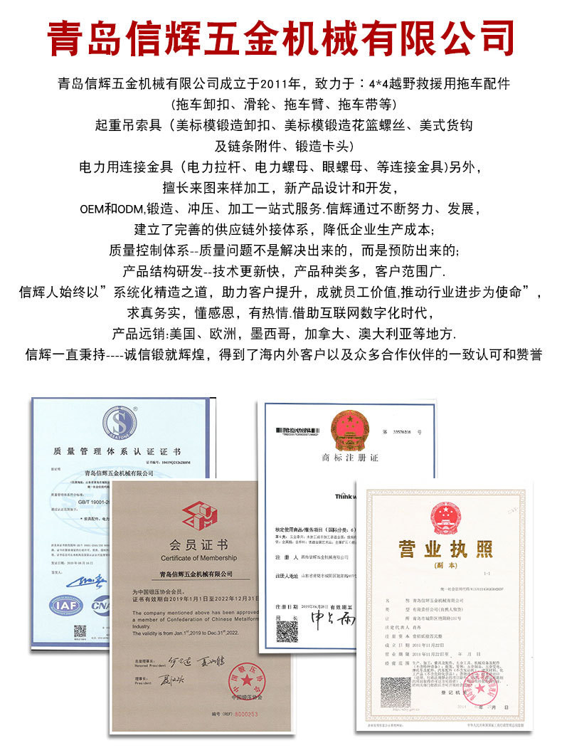 国境を越えて人気の高いアメリカ規格G209シャックル、自動車牽引保護用金具、電気メッキ、電気泳動、スプレー塗装、弓形工場