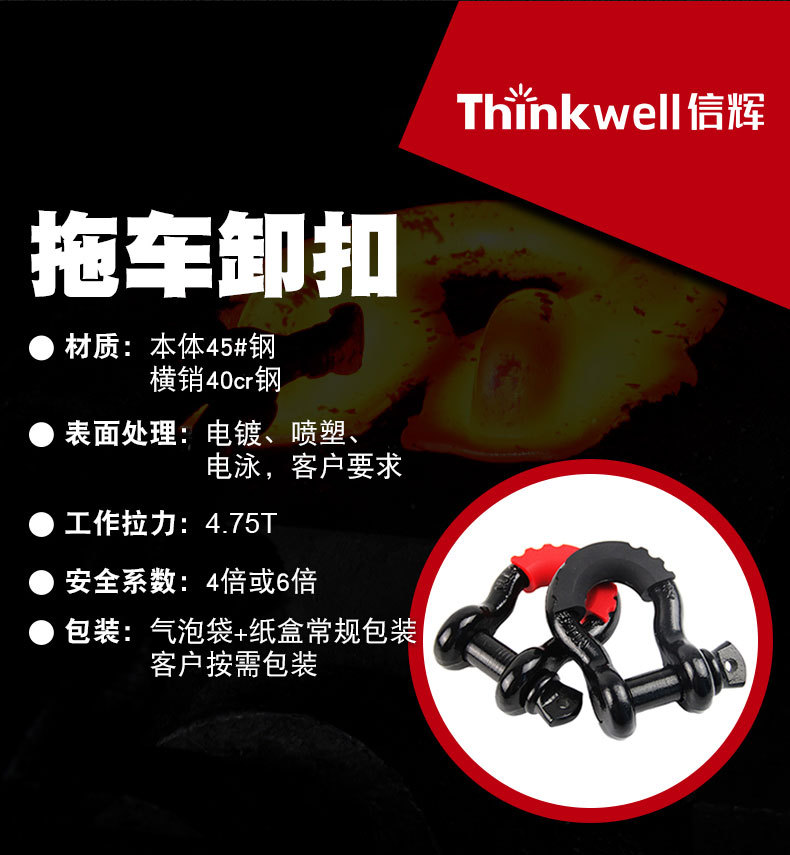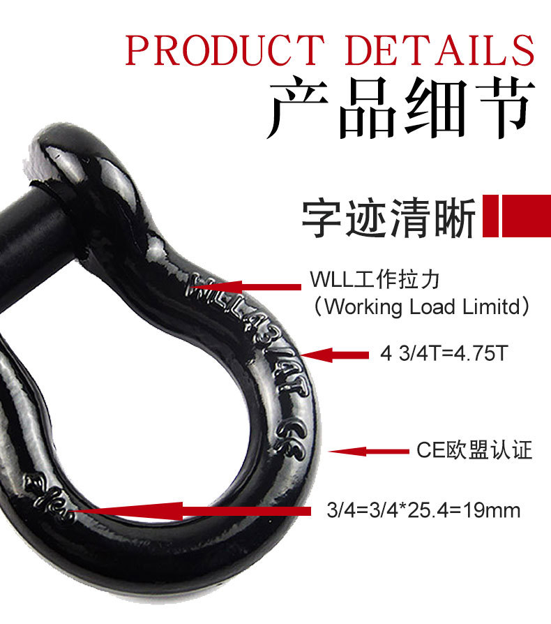 D型卸扣 起重卸扣 拖车勾救援车钩车辆牵引 跨境热销工厂弓型卸扣