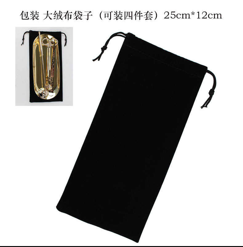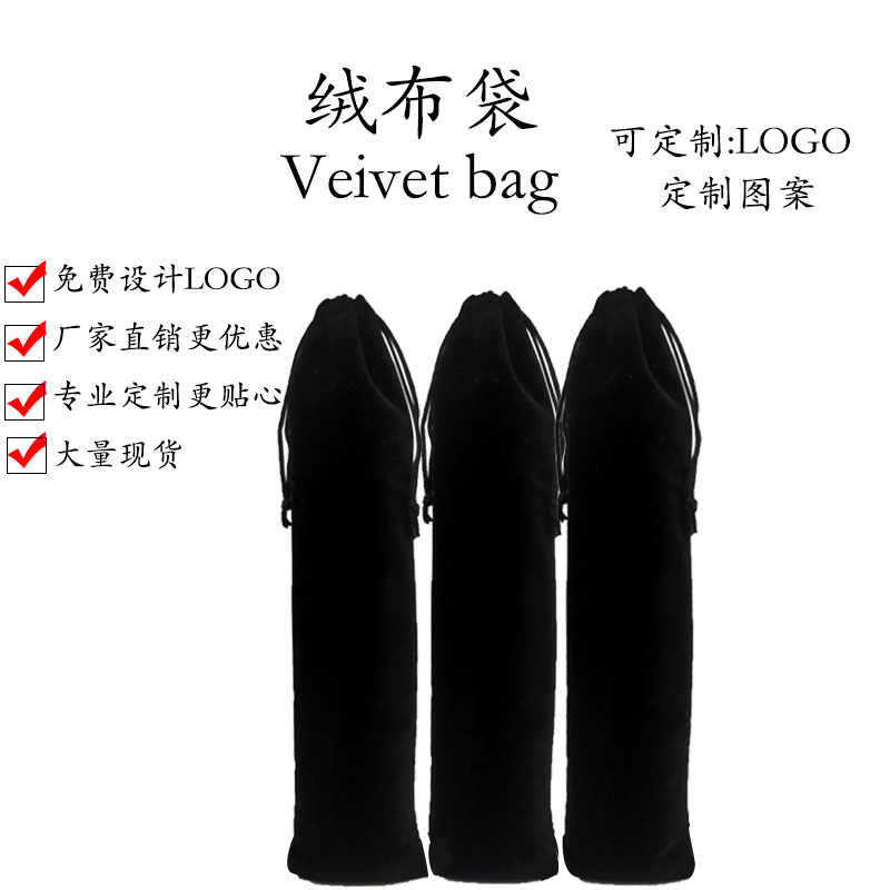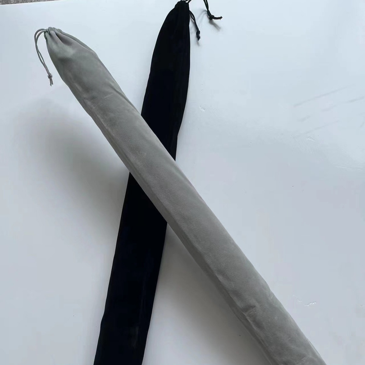 黒色のベルベット巾着袋 扇子や楽器の防塵収納用 10x30cm ロングタイプ 黒色植毛巾着袋
