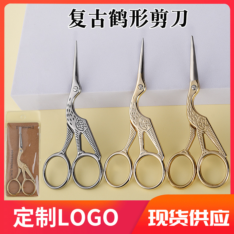 鶴の形の糸のハサミの十字は小さいハサミを刺繍します。