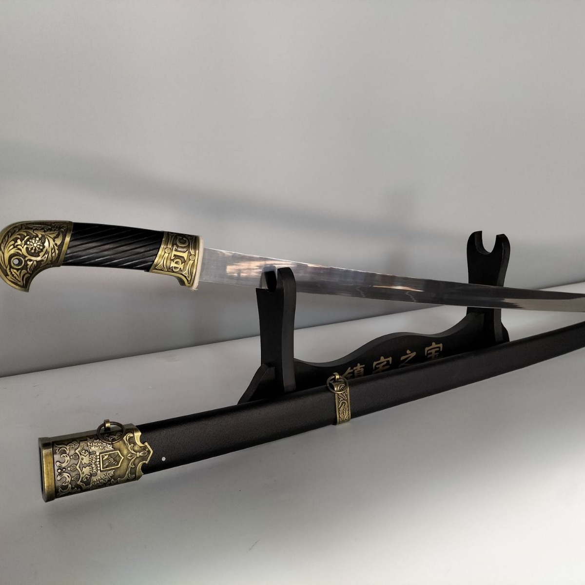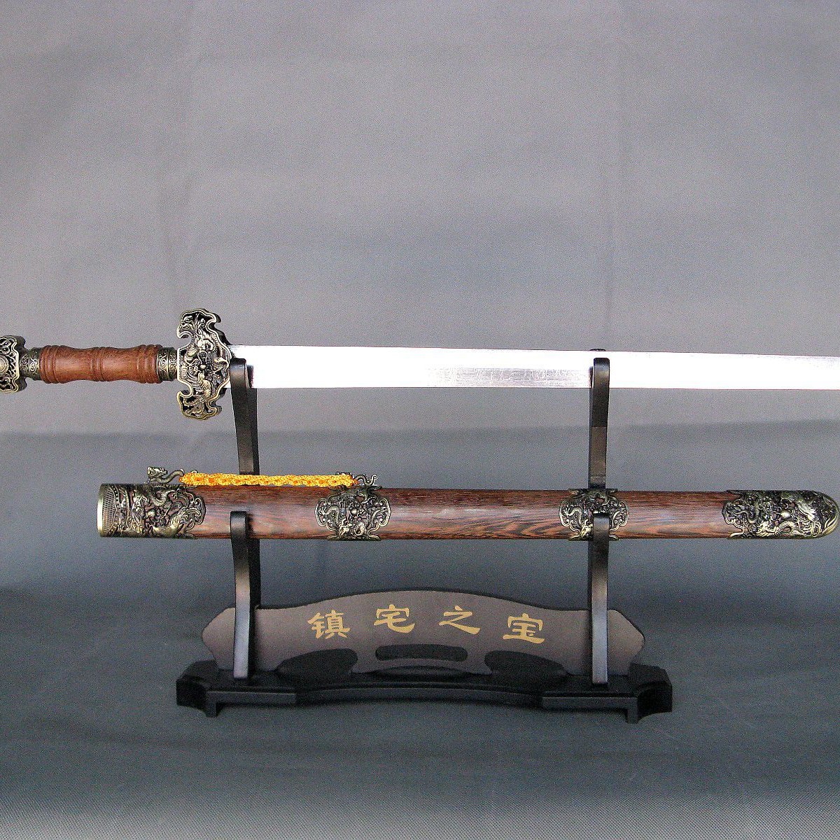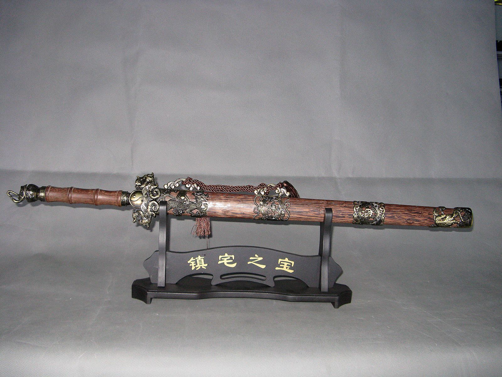 宝剑规格:总长83厘米 手柄21厘米 鞘长57厘米 剑身51厘米 重量2.16斤