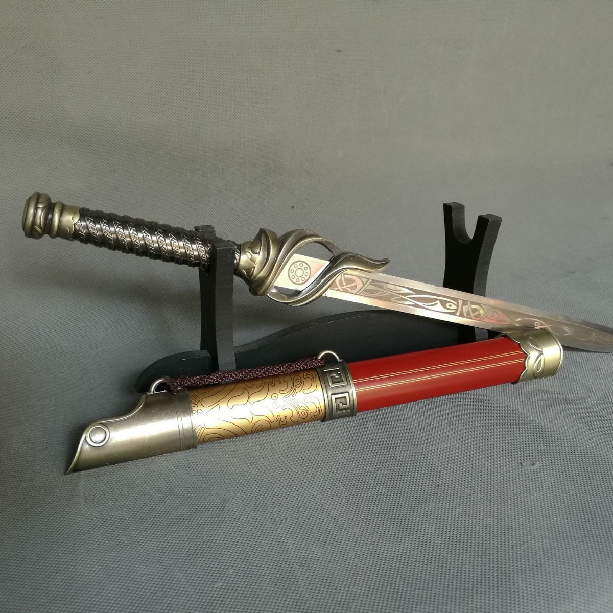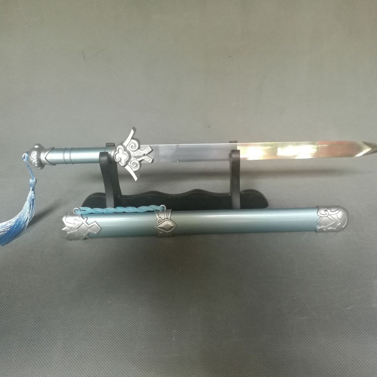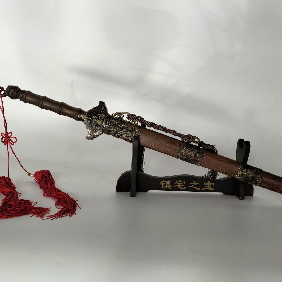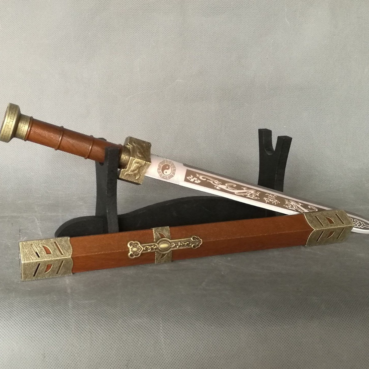宝剑规格:总长83厘米 手柄21厘米 鞘长57厘米 剑身51厘米 重量2.16斤