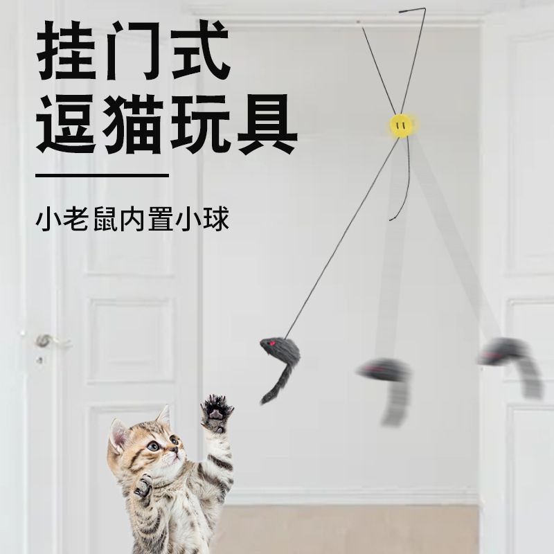 猫のおもちゃ、自己刺激と退屈解消、ドア吊り下げ弾性羽猫スティック、ベルスイング、小さなネズミ猫用品
