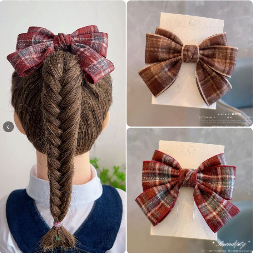 韩版秋冬发卡呢料英伦风格子蝴蝶结儿童发夹刘海对夹发饰头饰批发
