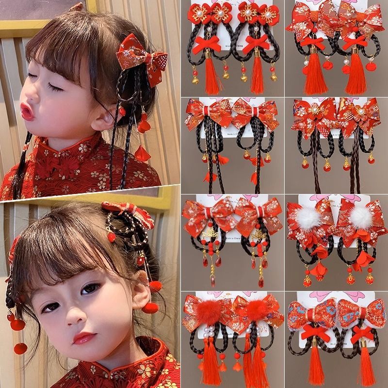新年发饰儿童小女孩中国风流苏拜年发夹女童流苏古风发卡汉服头饰
