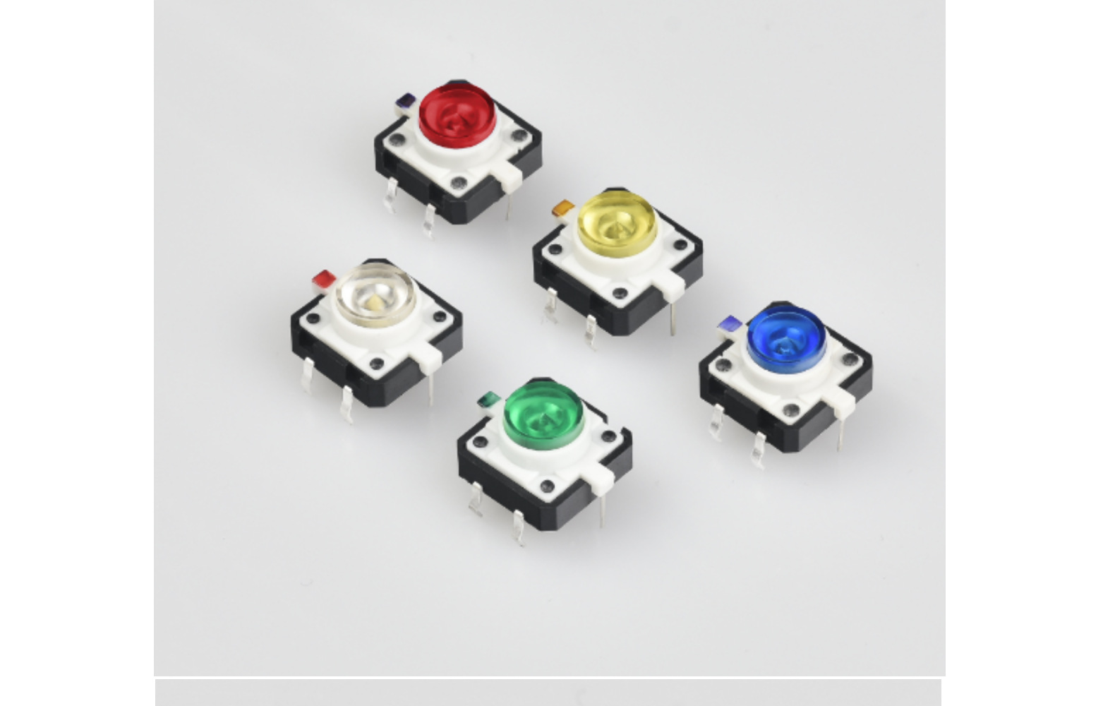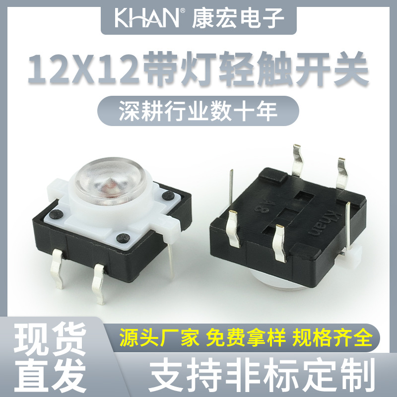 12*12带灯轻触开关透明手柄自复位翠绿灯白灯4脚插式微动按键开关