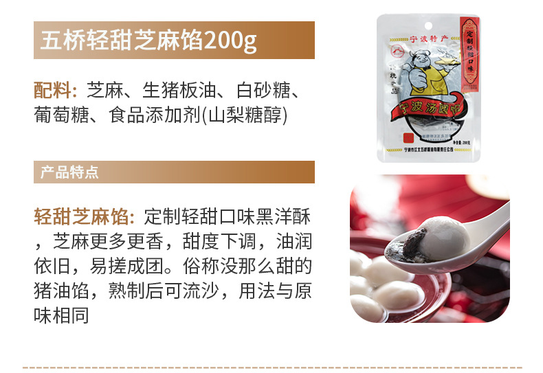 寧波湯円餡豚油胡麻餡五橋牌黒洋ショートニング胡麻餡元宵餡青団湯団餡200g