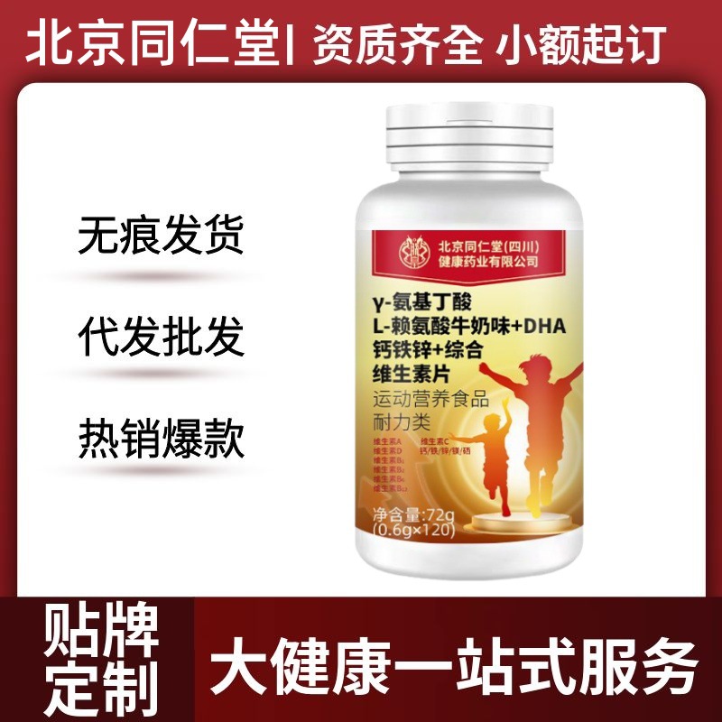北京同仁堂Y-氨基丁酸L-赖氨酸DHA钙铁锌片 适合儿童少年一件代发