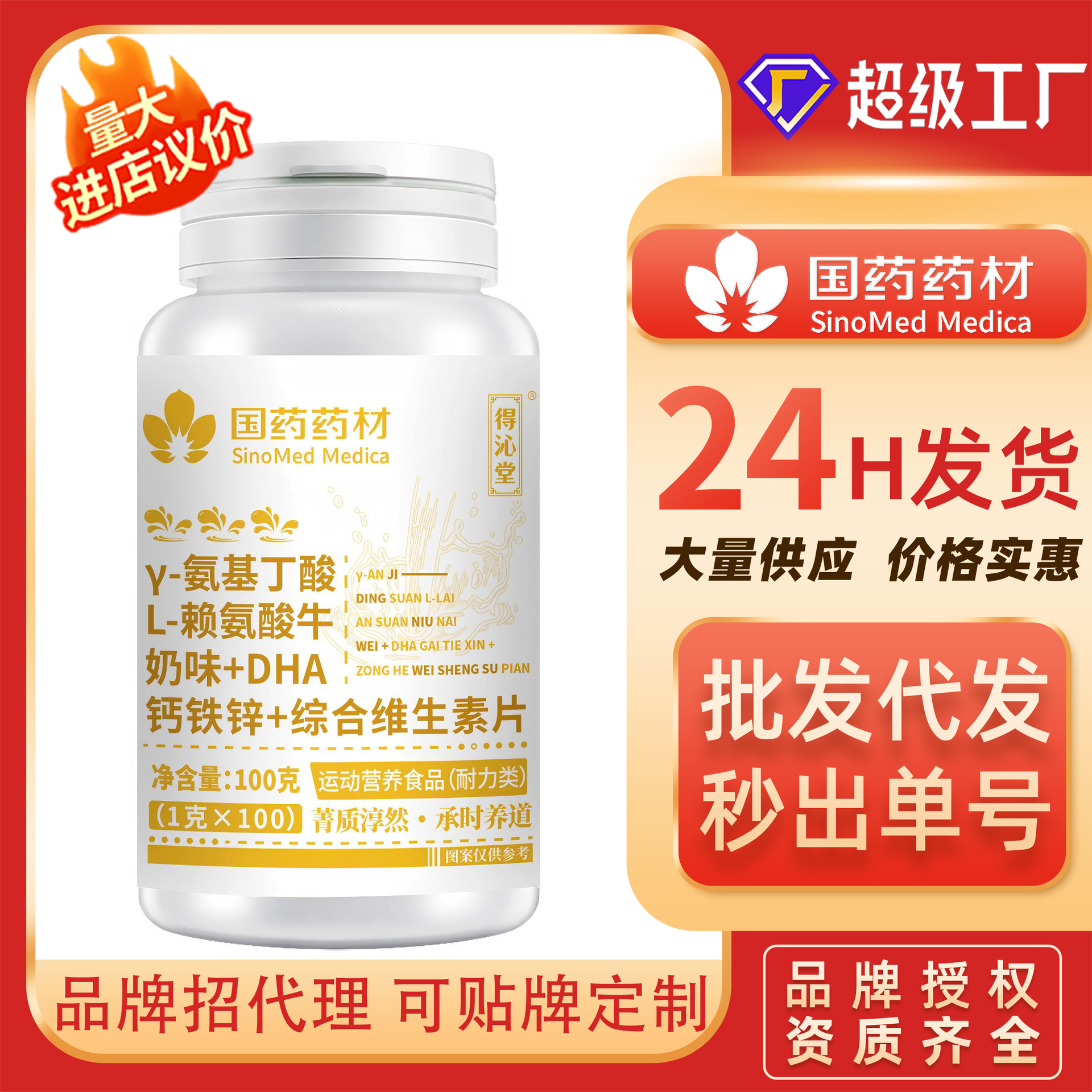 Y-氨基丁酸L赖氨酸牛奶味+ DHA钙铁锌+综合维生素片国药药材代发