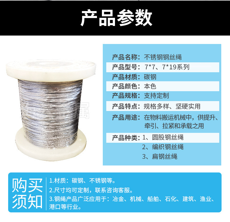 仕様 1mm(7*7),1.2mm(7*7),1.5mm(7*7),1.8mm(7*7),2mm(7*7),2.5mm(7*7),3mm(7*7),4mm(7*7),5mm(7*7),6mm(7*7),3mm(7*19),4mm(7*19),5mm(7*19),6mm(7*19),8mm(7*19),10mm(7*19),12mm(7*19),14mm(7*19)