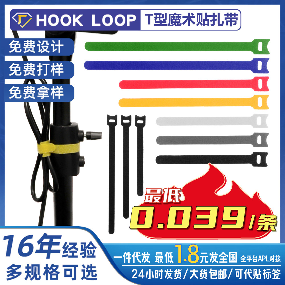 カスタムメイドのマジックテープ式ケーブルタイ、T型ケーブルタイ、データケーブル収納用ナイロンケーブルタイ(粘着テープ付き)
